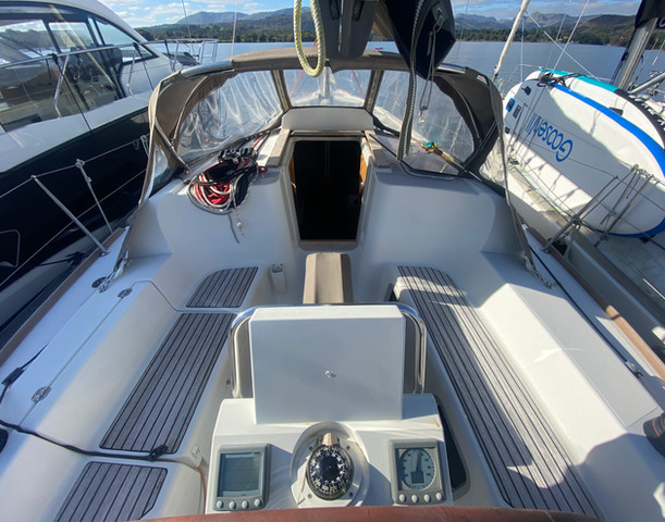 This sailboat features a spacious cockpit, complete with wheel steering that provides a fantastic view and stability while navigating through the wind. Having been used exclusively in freshwater on Windermere since new, this vessel has been meticulously maintained by its sole owner. Recent maintenance includes a comprehensive engine service, antifouling treatment, and regular valet cleaning, ensuring that the yacht remains in excellent condition throughout.