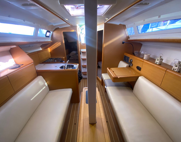 The Jeanneau Sun Odyssey 33i boasts a very spacious interior, designed to accommodate the needs of a family or a group of friends. This particular model features two double cabins, providing comfortable sleeping arrangements for up to four people. Its charming and well-maintained condition ensures that you can embark on your sailing adventures without delay (subject to survey).
